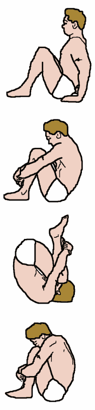 Bend leg to be stretched up and turn gently inwards whilst grasping the lower leg